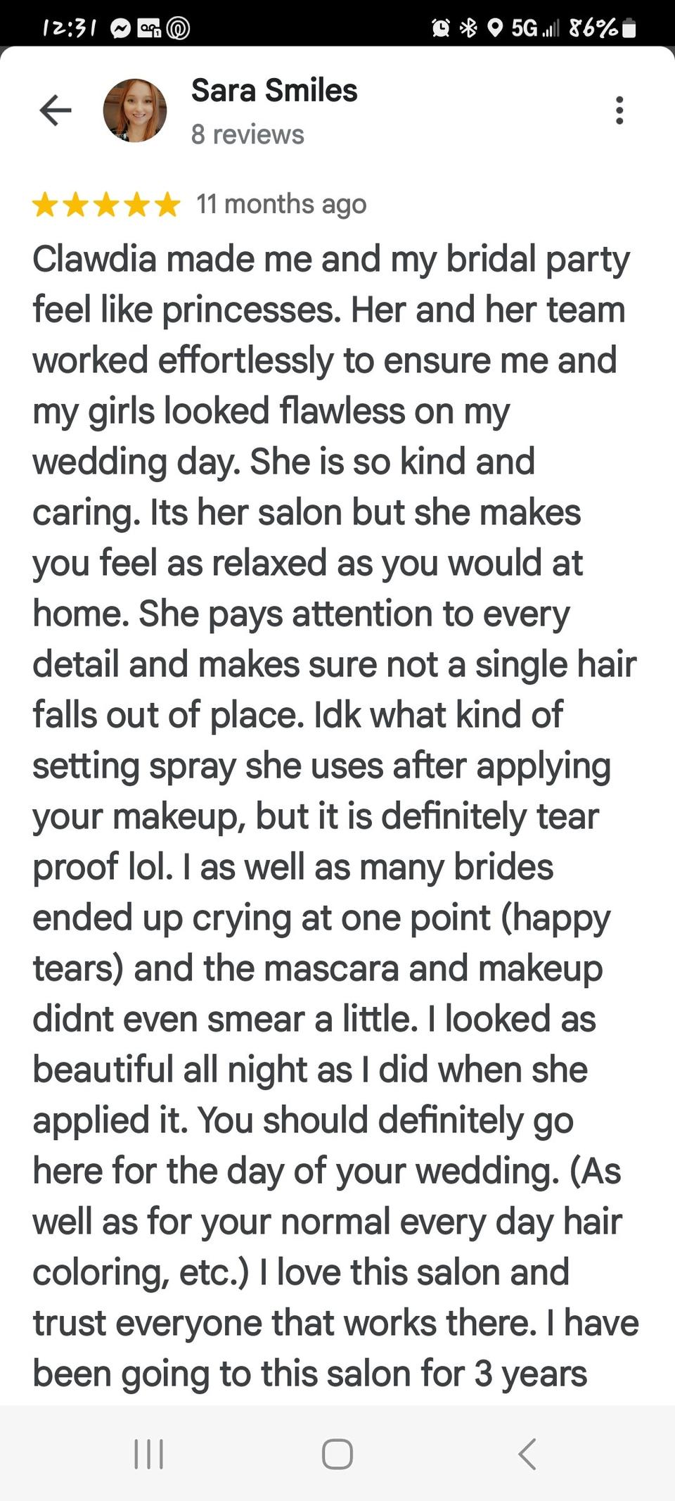Clawdia’s Beauty Salon is a Valparaiso, Indiana-based business that offers hair and makeup services for your wedding day. Owner Clawdia leads a team of master stylists dedicated to bringing your dream look to life. With combined decades of experience and a passion for beauty, the team will make you feel like your most radiant self on your special day. Services Offered Clawdia’s Beauty Salon offers a range of hair and beauty services to get you feeling gorgeous on your big day. You can book a complimentary consultation with the team to discuss your vision, and they’ll help you finalize all the details. On your special day, the traveling salon will come to you so you can enjoy a luxurious, beautifying experience in your home or at the venue. Whether you want a sleek updo, romantic flowing waves, glittering eyeshadows, or airbrush makeup, Clawdia’s Beauty Salon will look after you. They also offer men’s haircuts! Other services include: Dermaplaning Lash lifts and tints Cosmetic teeth whitening Organic spray tanning Hair extensions Keratin treatments Brazilian blowouts