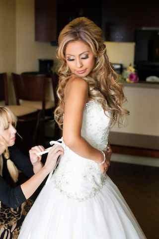 September 28, 2015 at 12:00 amI booked Alice for hair and make up for my wedding back in 9/2014. My wedding party consisted of four bridesmaids, MOTB, MOTG, sister in law and myself. Alice was so easy to communicate with via email and she respond to all of my questions quickly! I had a trial run at her salon where her expertise was evident. She helped me chose extensions, we agreed on the hair style and make up. Unfortunately on the day of my wedding it was super hot and humid. We had originally agreed on my hair down but last minute Alice came up with a great up do. Alice arrived with only one other stylist. I was initially worried about the fact… Read more